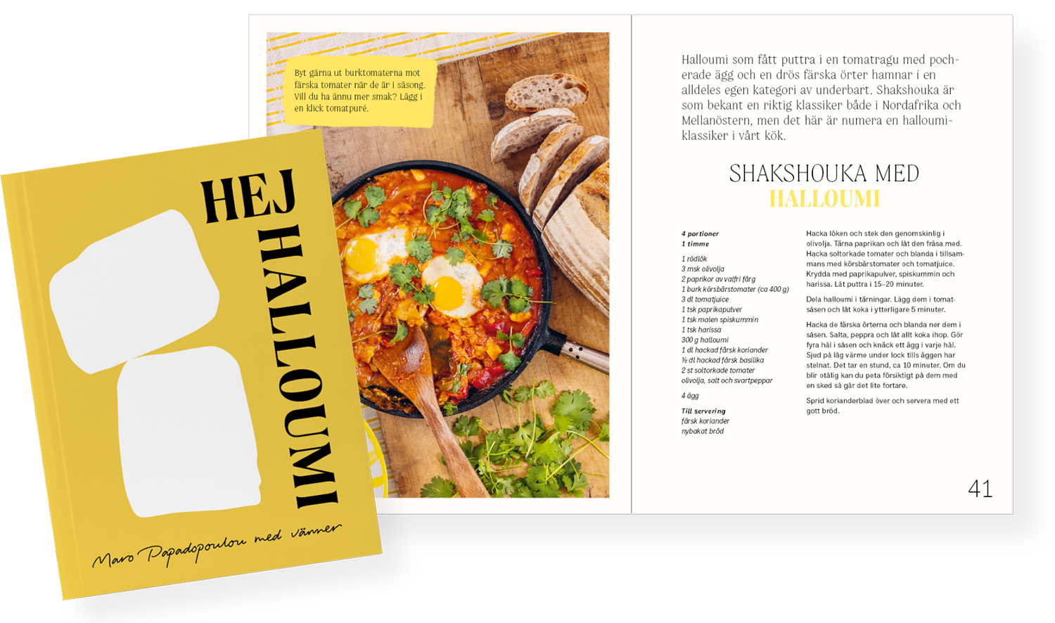 Hej halloumi var ett matgalet grupparbete. Art director Katy Kimbell ligger bakom formgivning, styling och illustrationer. Lina Eidenberg Adamo har fotograferat all den goda maten och Annika Edestrand står för texten. Idén till boken kom från Maros dotter Corina Papadopoulou, som varit bokens redaktör. Projektledare var Caiza Olsson.